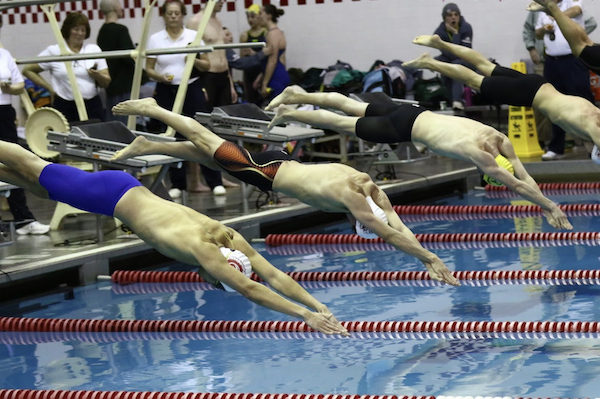 After the girls’ 100 freestyle, the boys put on a great race themselves. Taylor finished first in the 100 freestyle in a time of 47.93, followed by Ellis, Tinsley, and DeJohn.