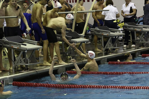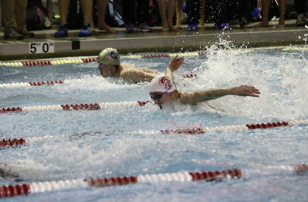 As for the 100 backstroke, Messenlehner came in first in a time of 52.62 and finished ahead of C. Coffman, Josh Doule (Nazareth, Sr.), and Jacob Brunetti (Easton Area, So.). To finish up all the individual events of the meet, the boys put on an exciting race where Mui finished first ahead of Collins by .10 of a second with a time of 57.31. Thomas and Leo Quaranta (Nazareth, Jr.) took third and fourth.