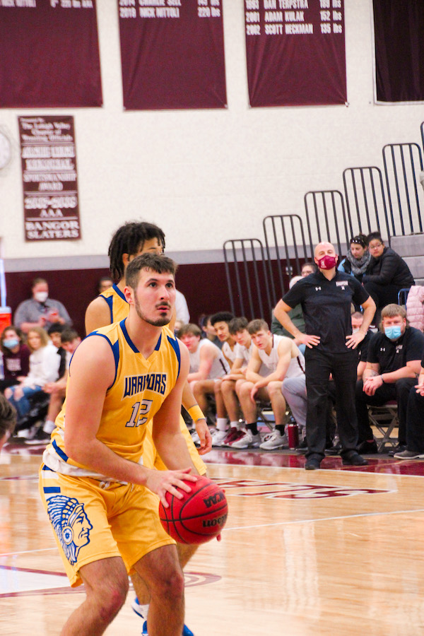The Slaters came out on fire. They won the tipoff and scored quickly off their first two possessions before the Warriors finally scored. The score at the end of the first quarter was 16-11 Slaters. Giaquinto scored half of his points in the first quarter, scoring ten of Bangor’s 16 points. The second quarter was very similar to the first. The Warriors outscored the Slaters by one. For the Warriors, Jones was the top scorer of the first half with 13 points. The score after the first half was 25-21 Slaters.