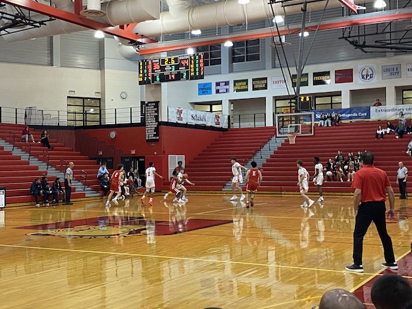 On Friday evening, Easton Boys Basketball hosted a tough matchup against Wilson High School. The Red Rovers came into this match with a 0-2 record, while the Wilson Bulldogs were undefeated. Although the Bulldogs were undefeated, the Red Rovers persisted and kept with Wilson for the entire game. They came up short, however, losing to Wilson by ten points.