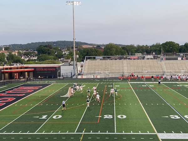 In a gripping District Quarterfinals game, Easton Boys Lacrosse hosted the Emmaus Hornets at Cottingham Stadium, in hopes of advancing to the semifinals and to eventually earn a spot at states. On Tuesday, Easton took on Parkland in the Eastern Pennsylvania Conference and secured a 14-7 win over the Trojans. The Red Rovers had a successful season, which included a come-from-behind playoff game win against the Freedom Patriots, a 14-5 regular season record, and a dominant victory to win the 2023 EPC, coming back from a devastating loss last year to Allentown Central Catholic in the 2022 EPC final.