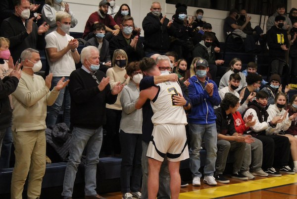 Senior Brendan Boyle of the Notre Dame Crusaders’ Boys Basketball team will remember today, Tuesday, January 25, 2022, for the rest of his life. An emotional night for Brendan Boyle, Coach Pat Boyle, and the rest of the Boyle family, as Brendan became Notre Dame Green Pond’s All-Time Leading Scorer. He surpassed the record (1,742) of the late Jeff Dailey. When speaking with Brendan Boyle after his game, he spoke of this emotional moment, “Jeff was my idol and I looked up to him ever since I was little.”