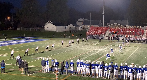 Although the night of October 29th didn’t have the most ideal outdoor conditions for a high school football game, (or any kind of sporting event for that matter), but regardless it was still a very big deal despite both teams having already qualified for playoffs. Given that both Nazareth and Easton were coming off wins the week prior against Whitehall and Emmaus respectively, both teams were in high spirits going into their rivalry match.