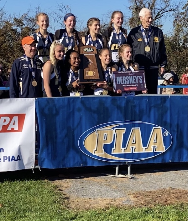 The Girls Cross Country team was this year’s Colonial League Champions, District XI Champions, and after having advanced to the PIAA State Cross Country Championships, the Notre Dame Crusaders Girls Cross Country Team were the 2021 State Champions. Sophomore Olivia Schweitzer was the District XI individual gold medalist as well.