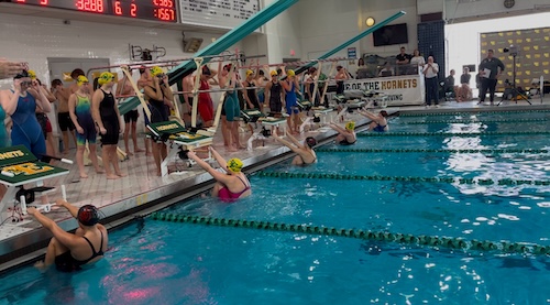 As for the boys, they put on a show with many impressive performances. Parkland flexed their depth again this year as everyone needed to pitch in to contribute to this win. The 200 medley relay event was won by Parkland’s senior Gabe Krizel, sophomore Ethan Coleman, junior Thomas Price, and senior Douglas Bell in a time of 1:35.73, only 0.42 of a second ahead of Emmaus’s relay. The energy from the crowd during that relay did not disappoint. The fast races continued into the individual events where Parkland’s sophomore Dominic Faenza took first in the 200 free with a time of 1:45.43. He was followed by Emmaus’s Brady King (1:46.55) and Parkland senior Pedro Terran (1:46.86). In the 200 IM, Emmaus’s Roman Herman finished first in a time of 1:59.18 only 0.14 ahead of Coleman (1:59.32), and Parkland senior Colton Chung took third in 2:02.66. A tight race followed in the 50 free. Griffin Messenlehner from Emmaus won in 20.96, Price followed in second in 21.60, and sophomore Jacob Piccini from Parkland came in third in 21.94. As for diving, Parkland senior Bradley Kunz secured first with 251.25 points, Emmaus’s Douglas Cornish finished second with 193.80 points, and Parkland junior Ari Levin took third with 188.90 points.