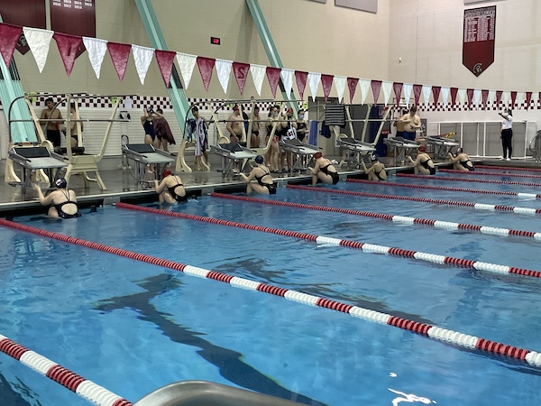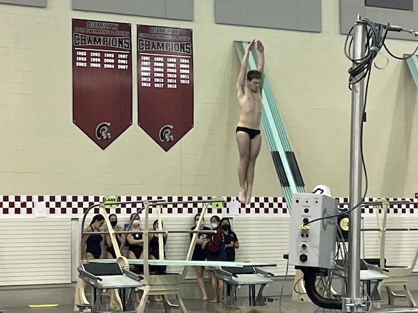 On the boys’ side, they held their ground keeping the score a single point away after diving and just fell short of a win. Senior Nick Zaffiro had a great race in the 200 IM and secured first place. Zaffiro out touched Liberty’s Malcolm Collins by 0.11 in the 100 breast to place first. Senior Harrison Kim out touched Liberty’s Wade Wu by 0.15 to place third. Senior Luke Willard went a 5:00.69 in the 500 free and placed first. Freshman Colton Chung went a season best in the 100 fly, 58.98 and placed second. Freshman Gabe Krizel also went a season best of 53.46 and placed third in the 100 free. As for diving, senior Ethan Radio placed first with a score of 256.30, junior Ryan Beltrame placed second with a score of 196.40, and freshman Harry Epstien placed third with a score of 126.90.