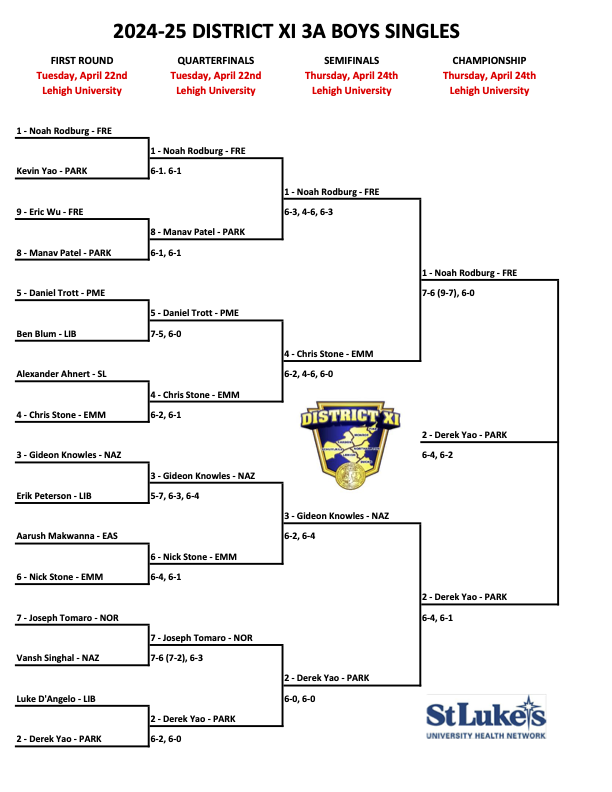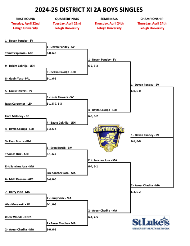 Results from today’s District XI 2A and 3A Boys Singles Semifinals and Finals.