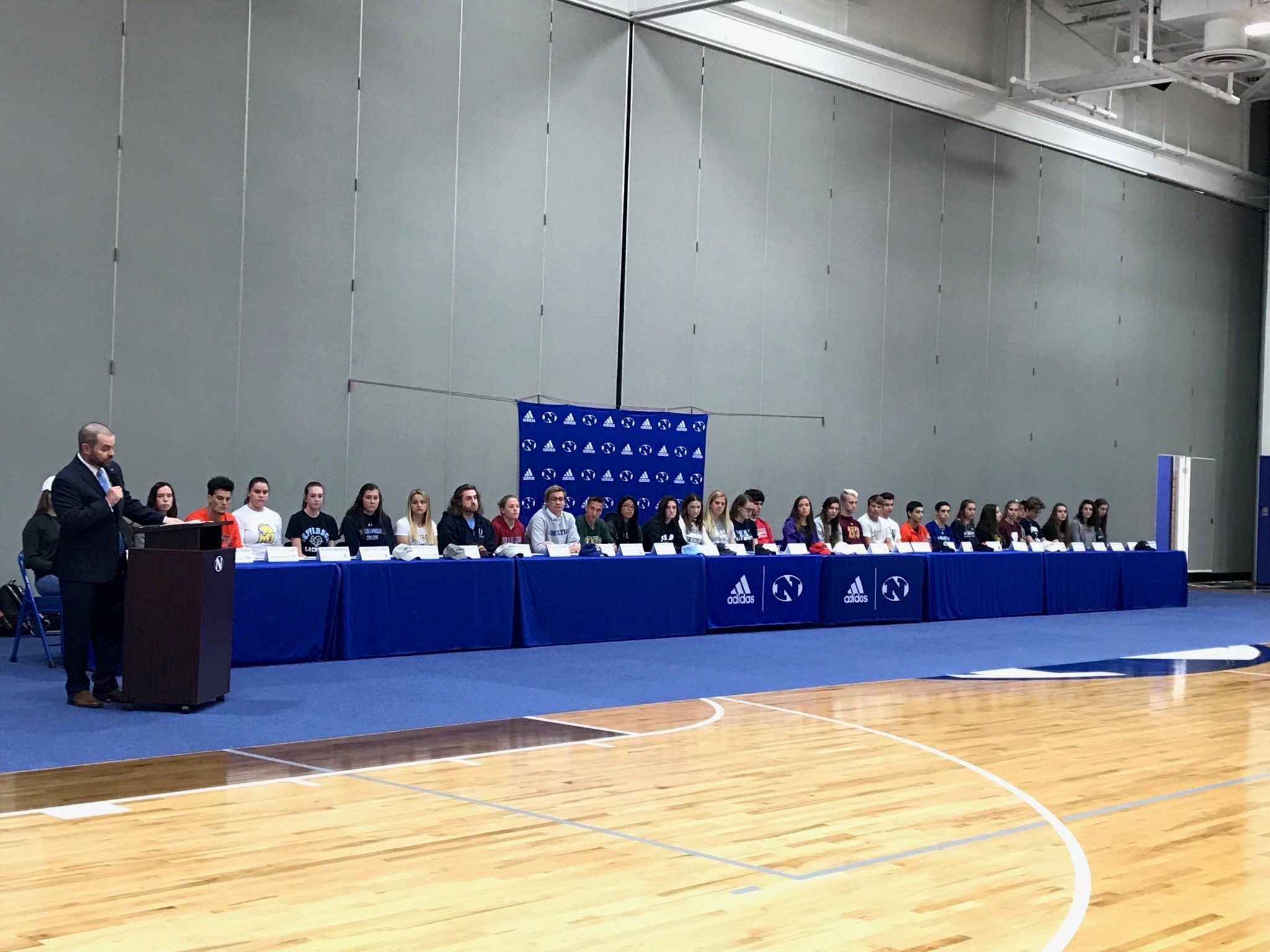 Five students will continue their education in Cross Country and Track and Field, four in Girls Basketball and Swimming, three in Girls Lacrosse and Football, while two will move on in Girls Volleyball, Girls Soccer, Field Hockey, and Softball. Also, represented on this day will be Tennis, Boys Volleyball, Wrestling, Boys Soccer, Boys Basketball, Cheerleading, and Boys Lacrosse.