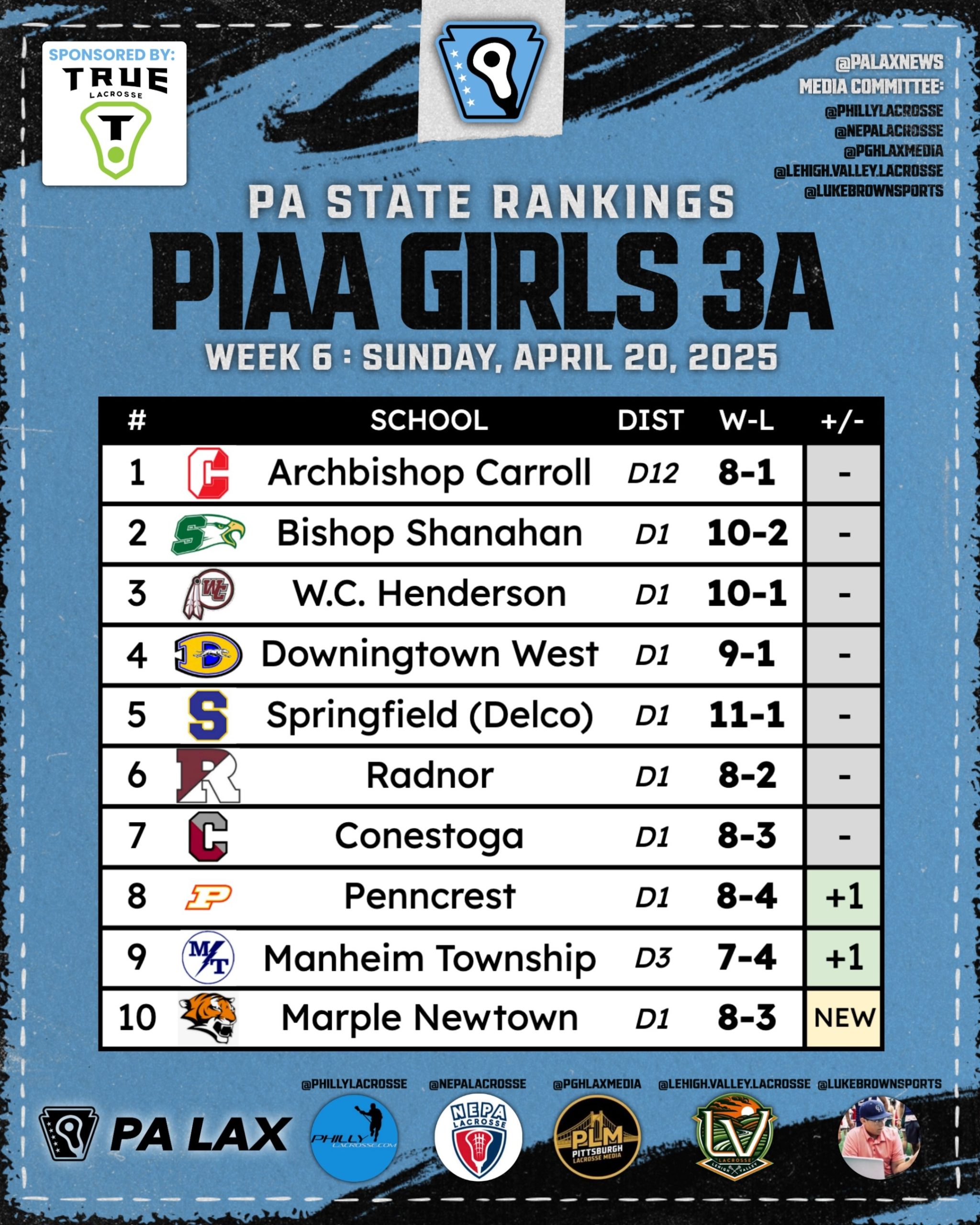 1. Marple Newtown (1) 8-3 Prev: No. 2